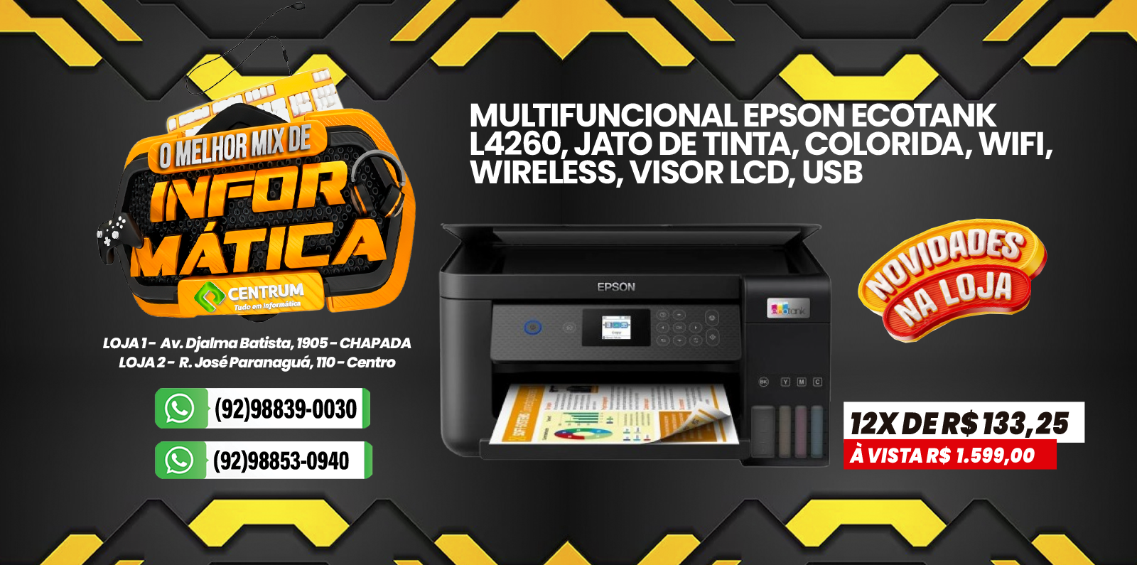 Impressora Multifuncional Epson EcoTank L3250, Colorida, Wifi, Wireless, USB, Bivolt, Preta – C11CJ67303